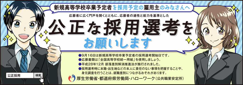 9月16日から新規高等学校卒業予定者の採用選考活動が始まります。
