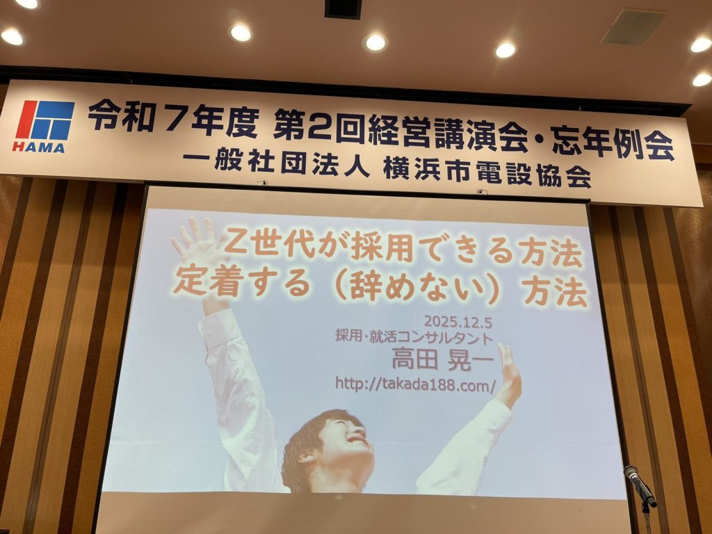 横浜市電設協会の忘年例会として、Z世代の中途採用が成功する方法を話してきました。