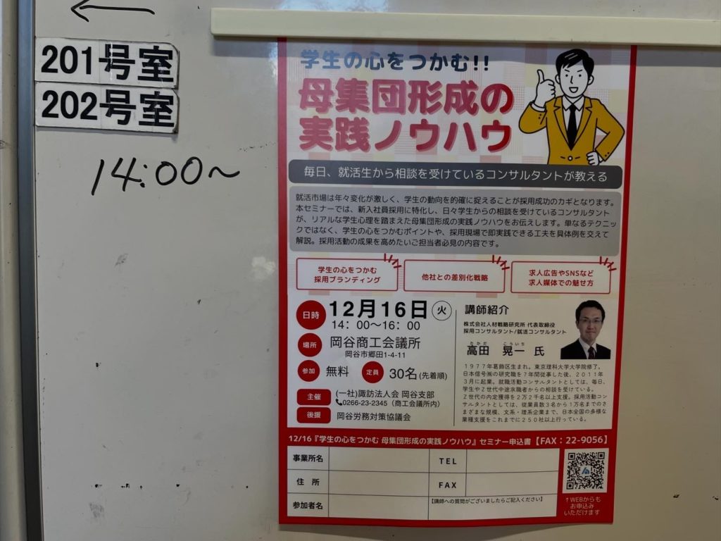 都会も地方も全く関係なく、就活生の意をに沿ったアピールを自社サイトやYouTubeなどですれば、コスパ最強で貴社の性格に合った就活生からの応募が来るよ!と事例を紹介しながらいろいろ話しました。