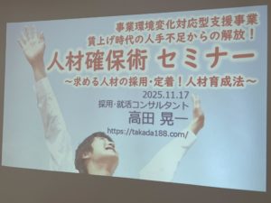 (採用のPDFニュースメール「高田晃一からの手紙」2025年11月17日配信分より) Z世代の中途採用を成功させる方法を、今月5日に天童商工会議所にて講演をしました。 この号が配信される本日は静岡商工会議所にて講演をして […]