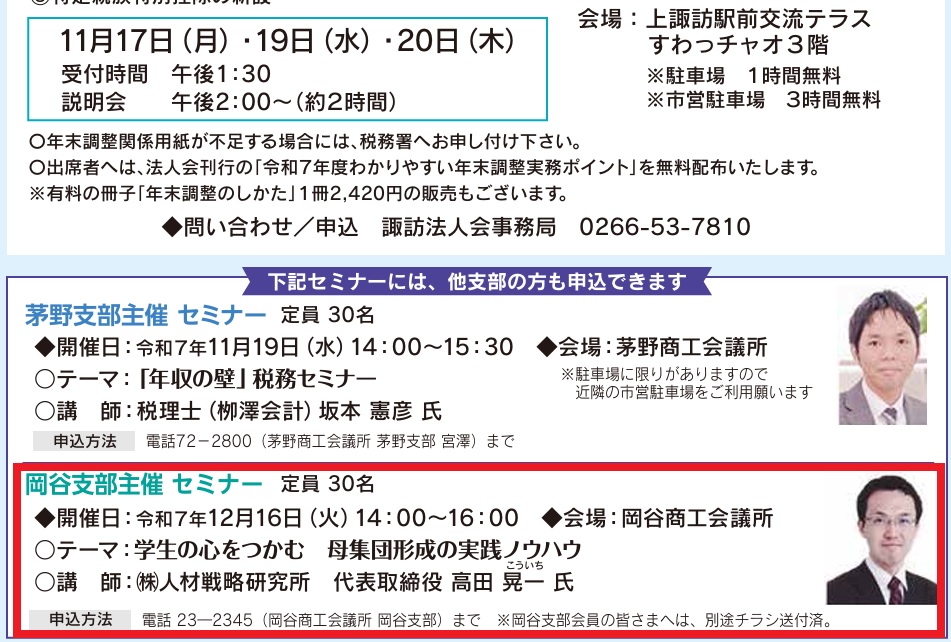 12月16日(火)に諏訪法人会岡谷支部の主催にて講演をします。